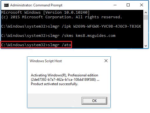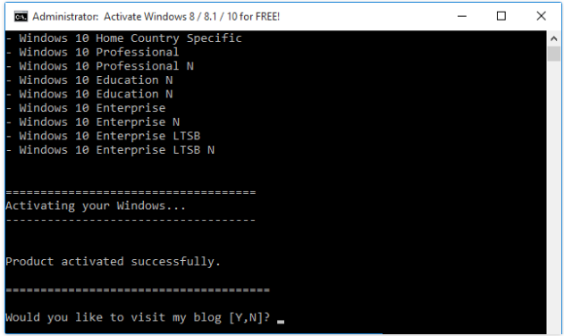 cscript //nologo slmgr.vbs /ato | find /i "successfully" && (echo.&echo ============================================================================&echo.&echo #My official blog: MSGuides.com&echo.&echo #How it works: bit.ly/kms-server&echo.&echo #Please feel free to contact me at msguides.com@gmail.com if you have any questions or concerns.&echo.&echo #Please consider supporting this project: donate.msguides.com&echo #Your support is helping me keep my servers running everyday!&echo.&echo ============================================================================&choice /n /c YN /m "Would you like to visit my blog [Y,N]?" & if errorlevel 2 exit) || (echo The connection to my KMS server failed! Trying to connect to another one... & echo Please wait... & echo. & echo. & set /a i+=1 & goto server)