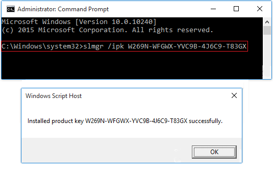 Step 3: Now type, slmgr /ipk 'product key' and hit Enter.